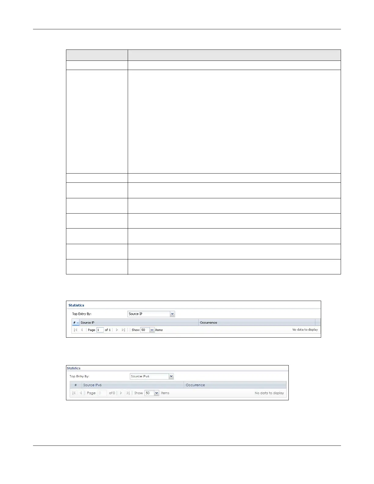 Source IP This column displays when you display the entries by Source IP. It shows the source IP