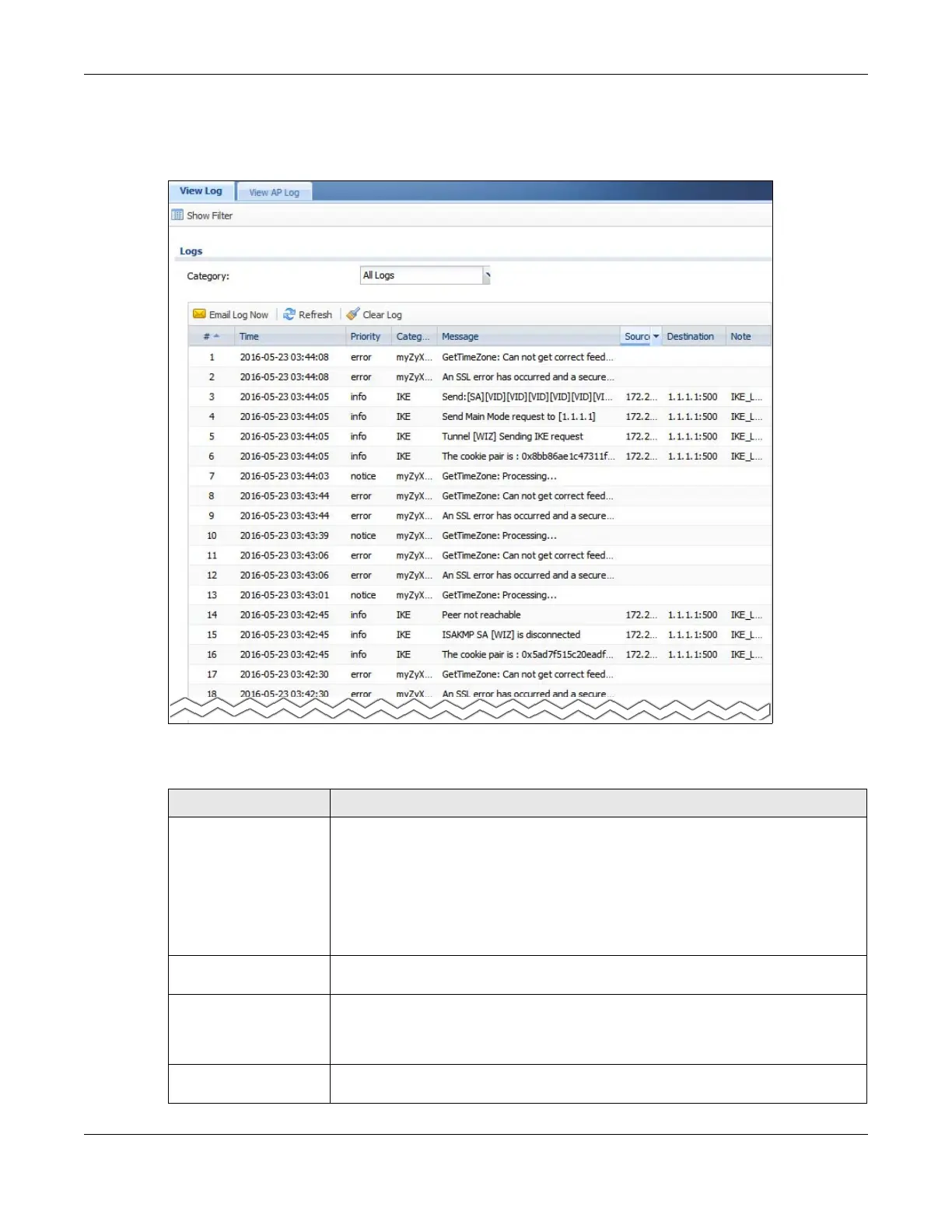 Category Select the type of log message(s) you want to view. You can also view All Logs at one