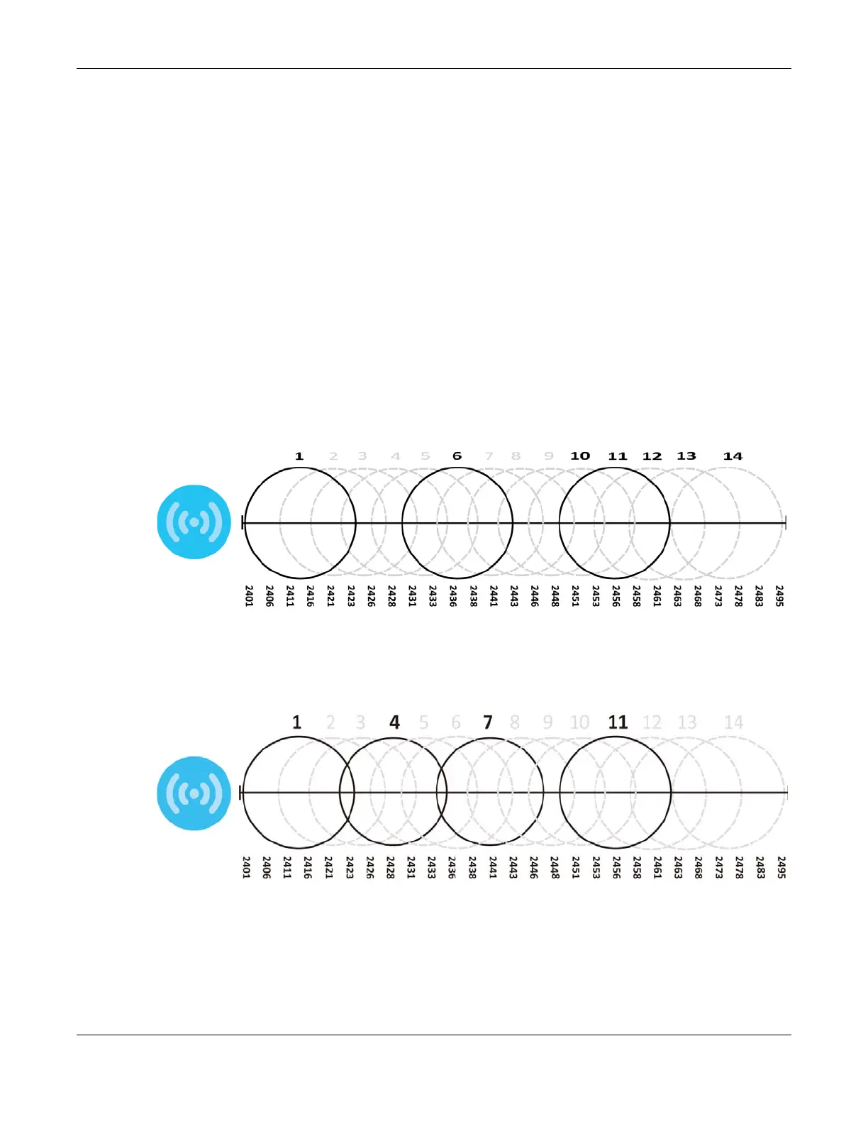 exclusively: 1, 6 and 11. When an AP broadcasts on any of these three channels, it should not interfere