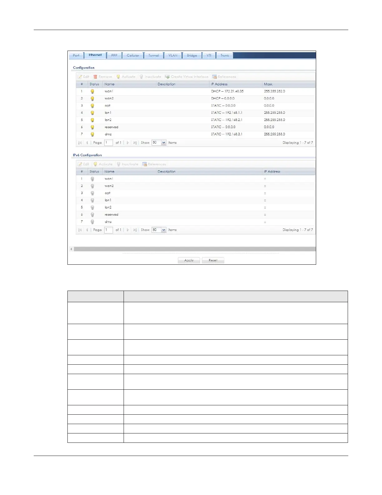 Figure 242 Configuration > Network > Interface > Ethernet
