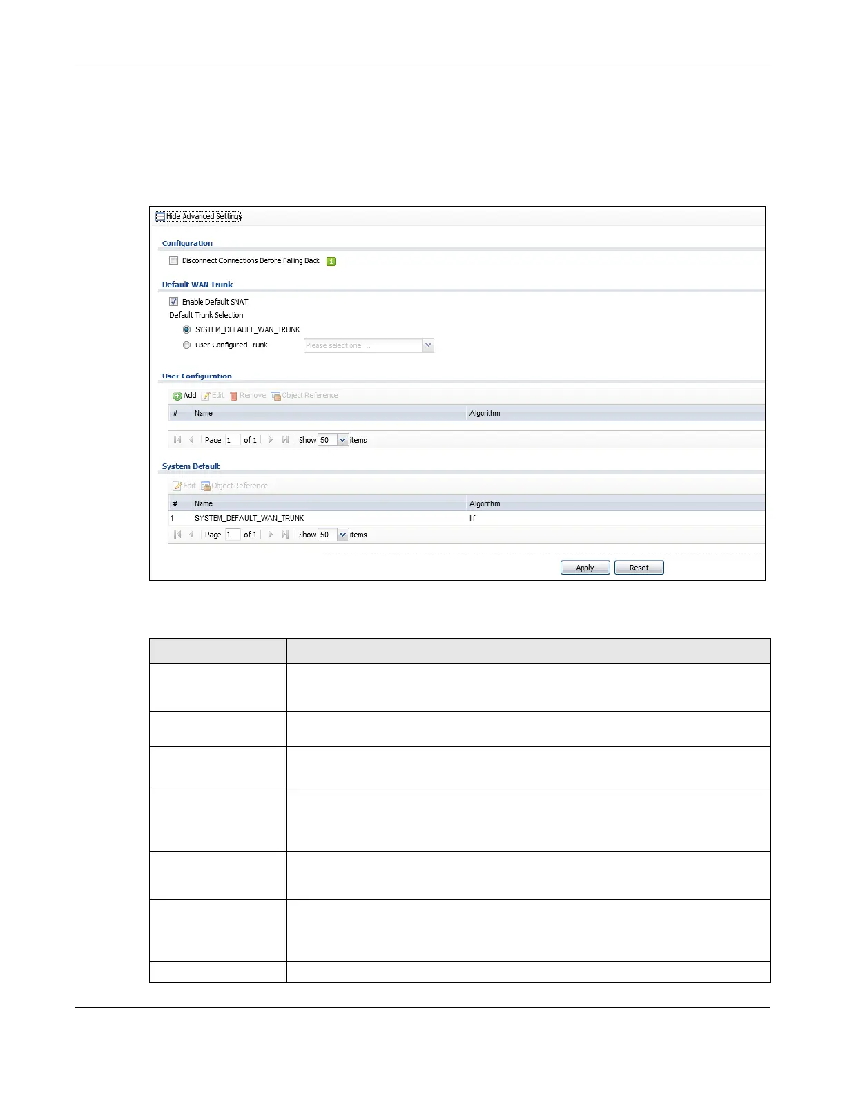 Default Trunk Selection Select whether the Zyxel Device is to use the default system WAN trunk or one of the user