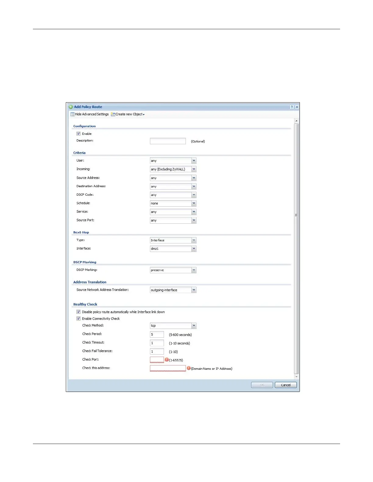 Click Configuration > Network > Routing to open the Policy Route screen. Then click the Add or Edit icon