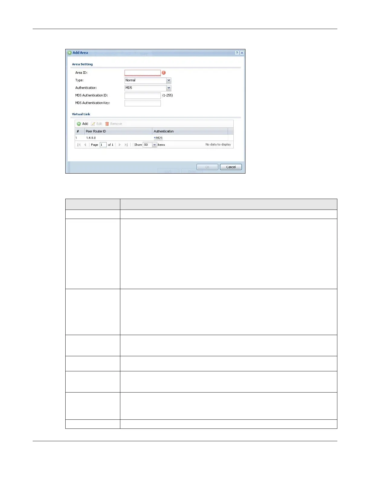 Table 146 Configuration > Network > Routing > OSPF > Add
