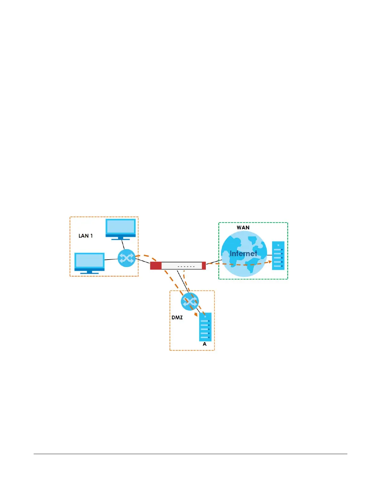 web proxy server. In the following example, proxy server A is connected to the DMZ interface. When a