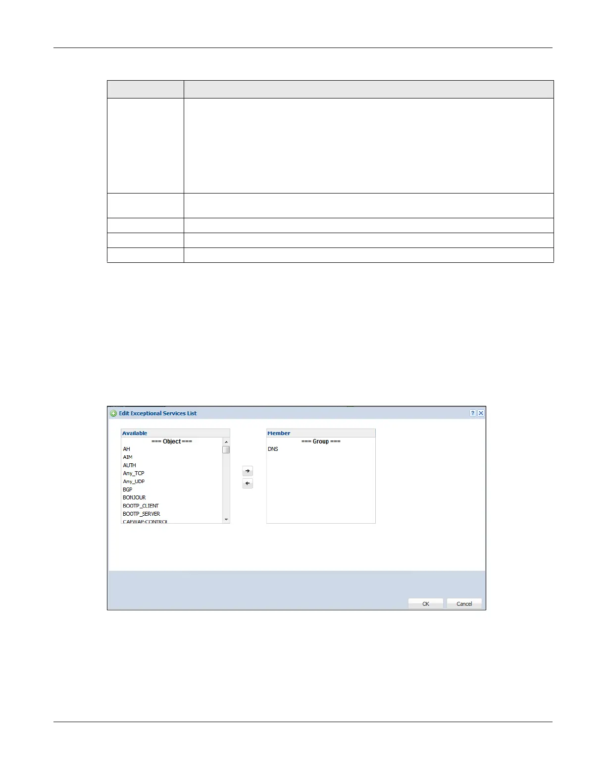 service that you want to remove from the member list, and click the left arrow <- button to remove