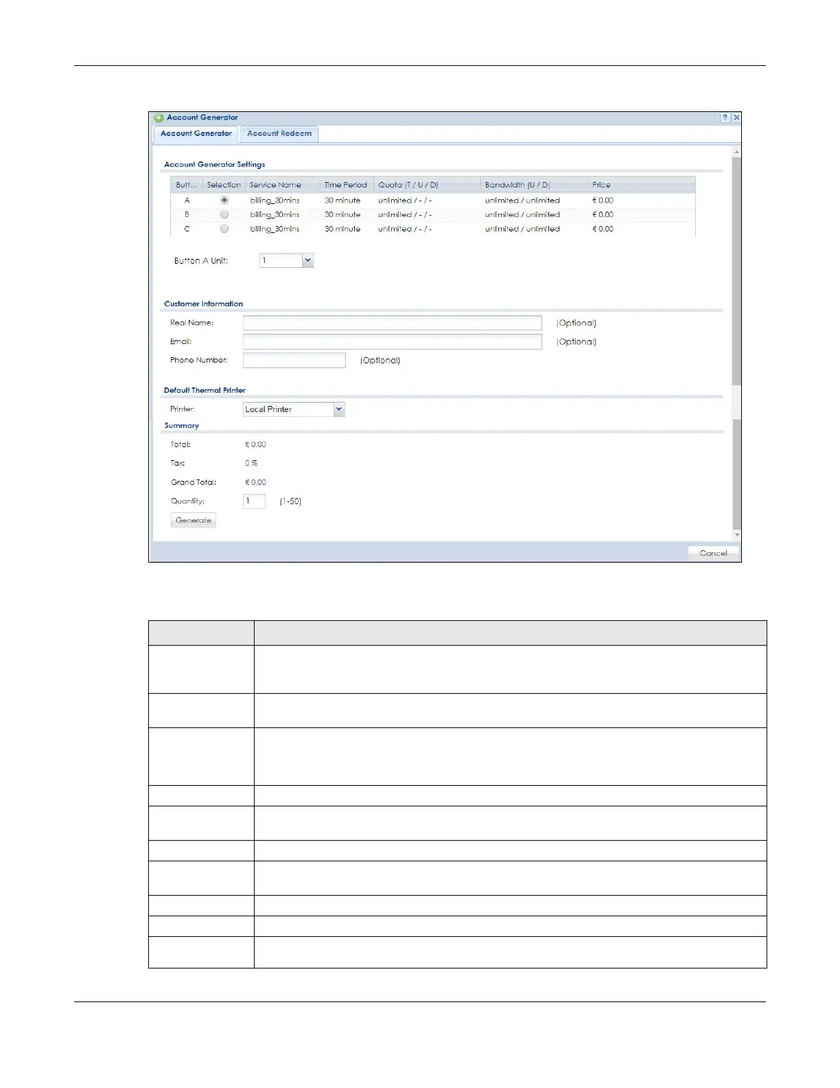 Unit This field displays the duration of the billing period that should be reached before the Zyxel