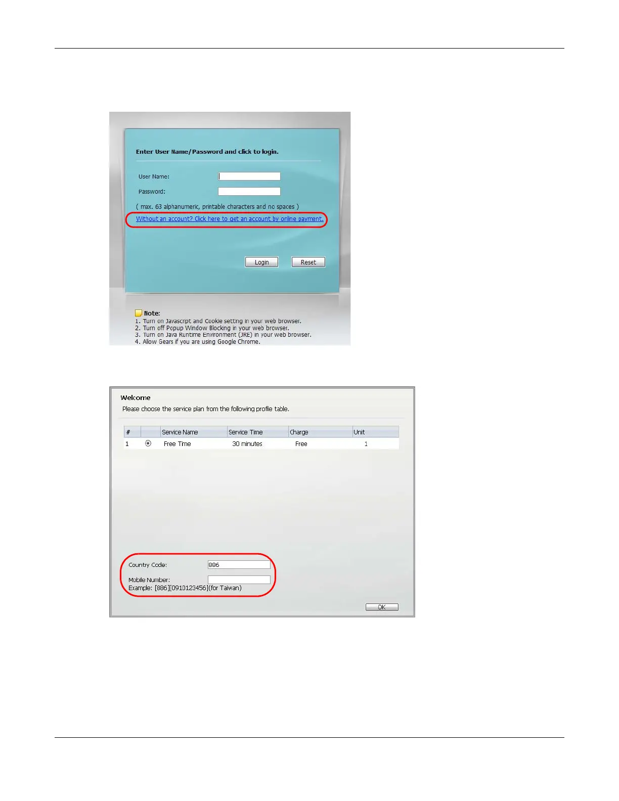 in the login screen will be mainly for online payment service. You can still click the link to get a free