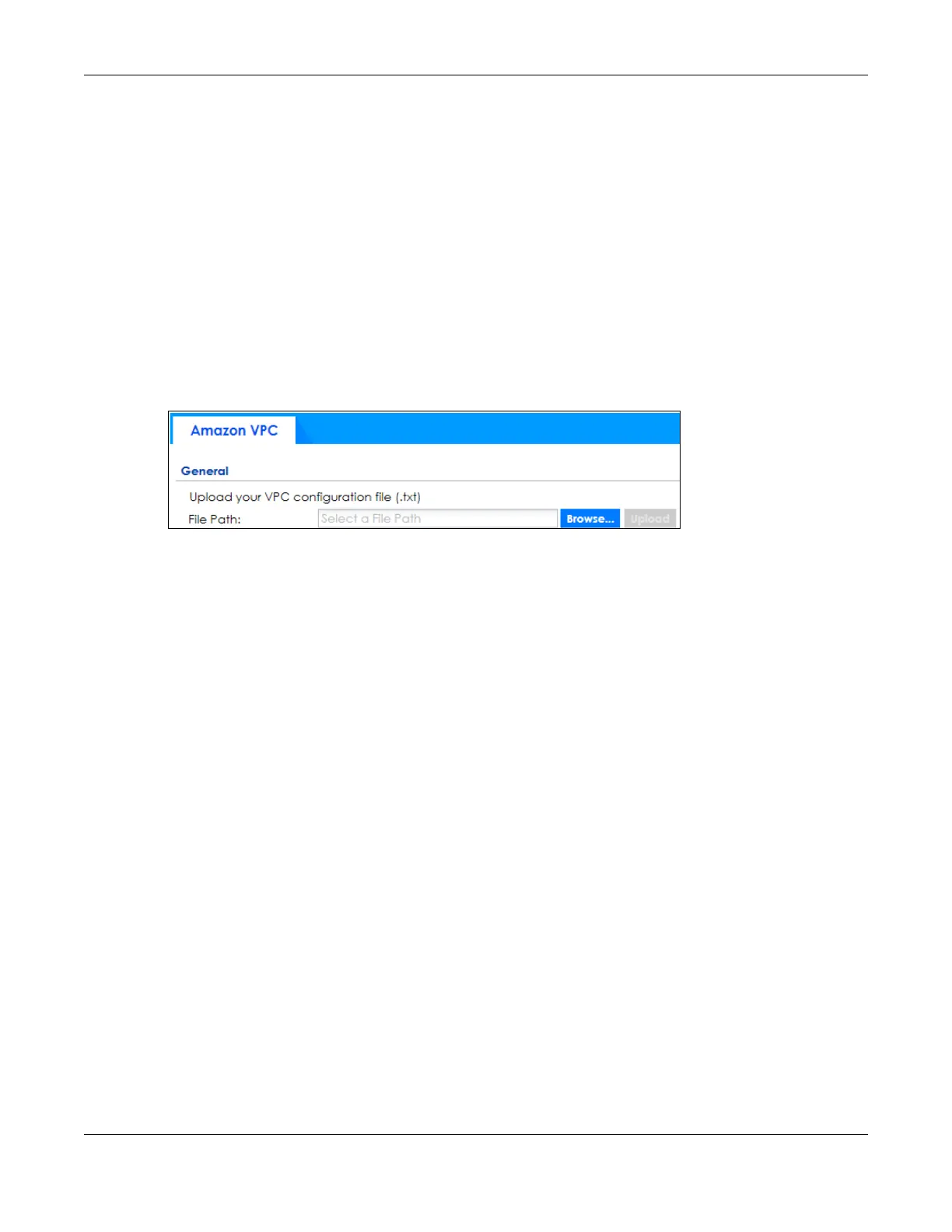 3 In the Zyxel Device, upload the VPC text file to the Zyxel Device in the Configuration > VPN > Amazon