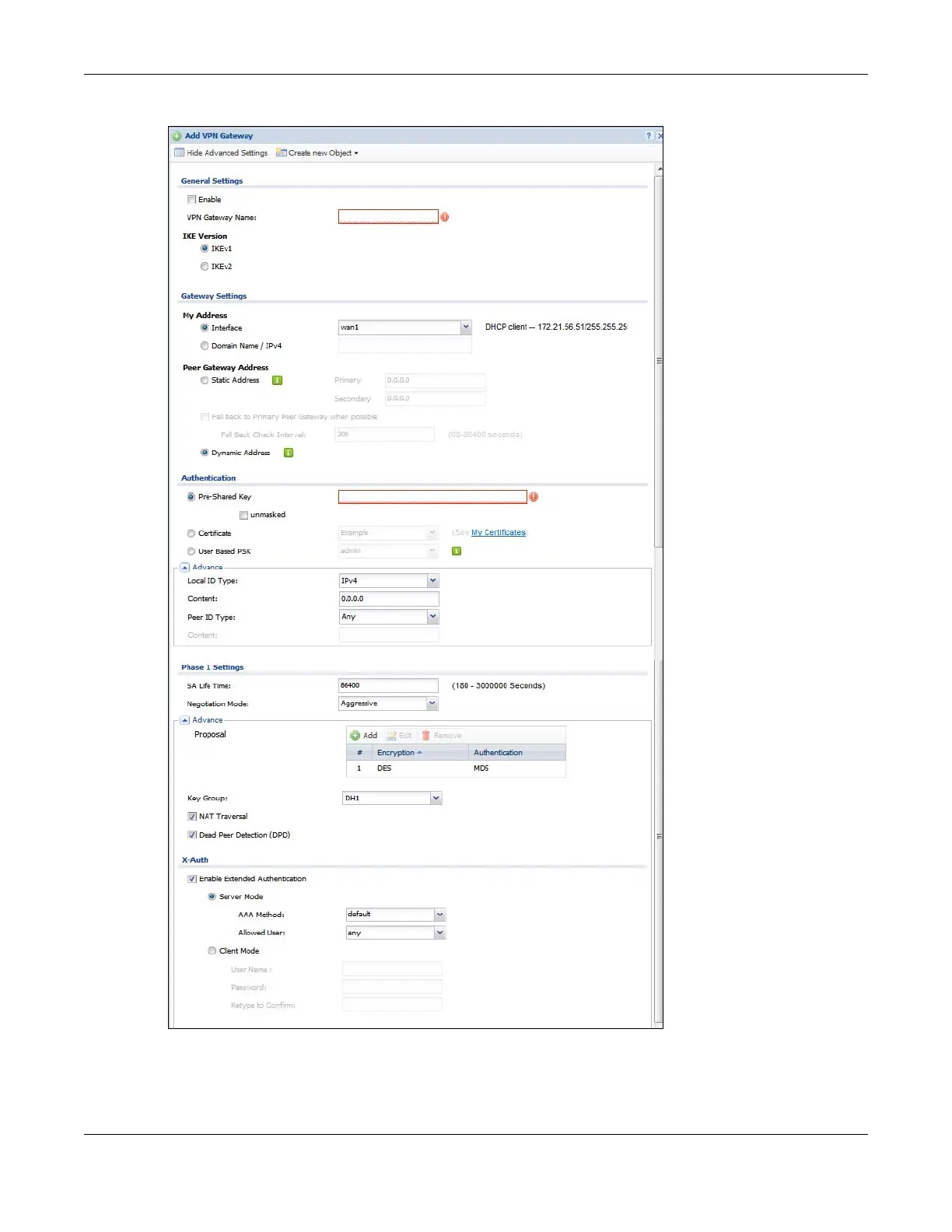 Figure 433 Configuration > VPN > IPSec VPN > VPN Gateway > Add/Edit