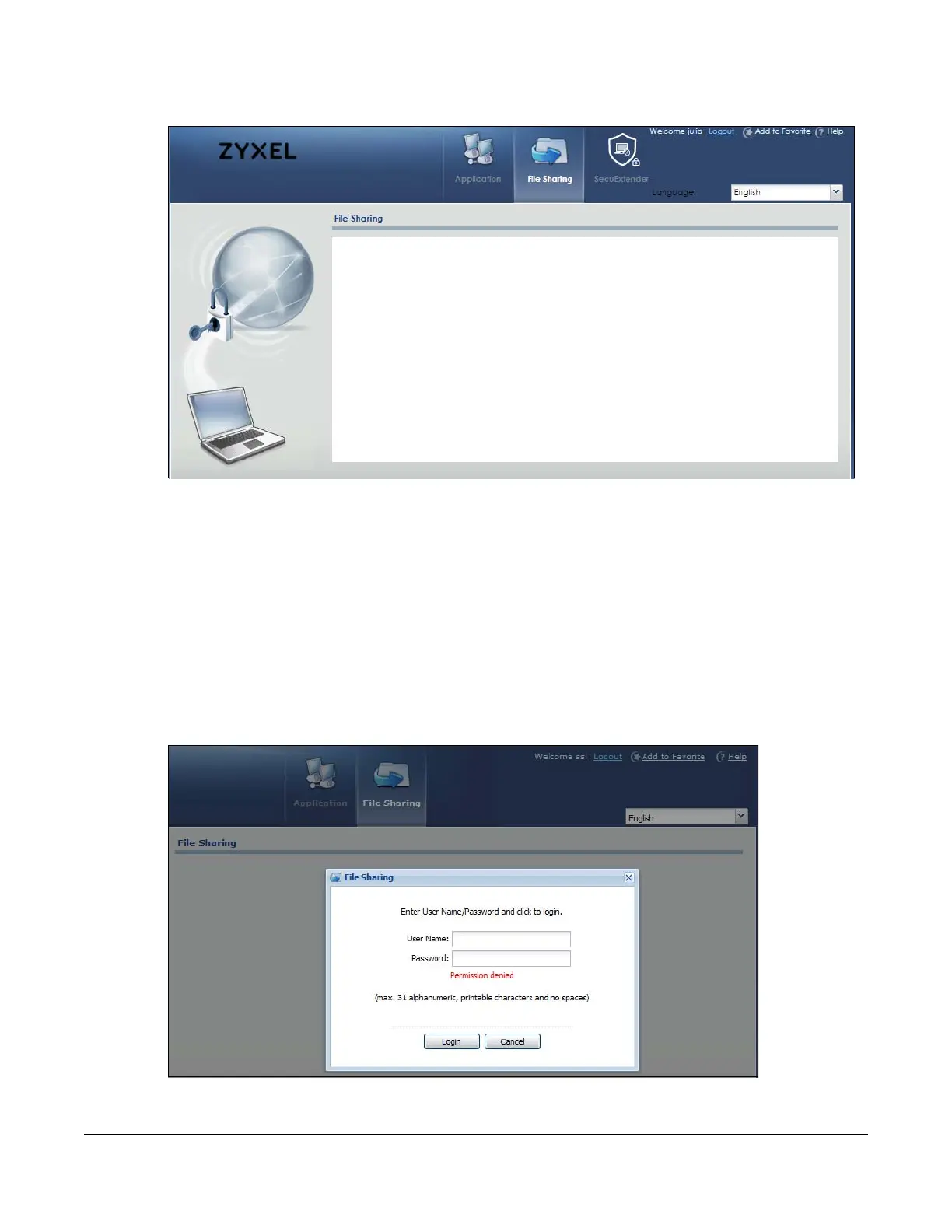 Figure 465 File Sharing: Enter Access User Name and Password
