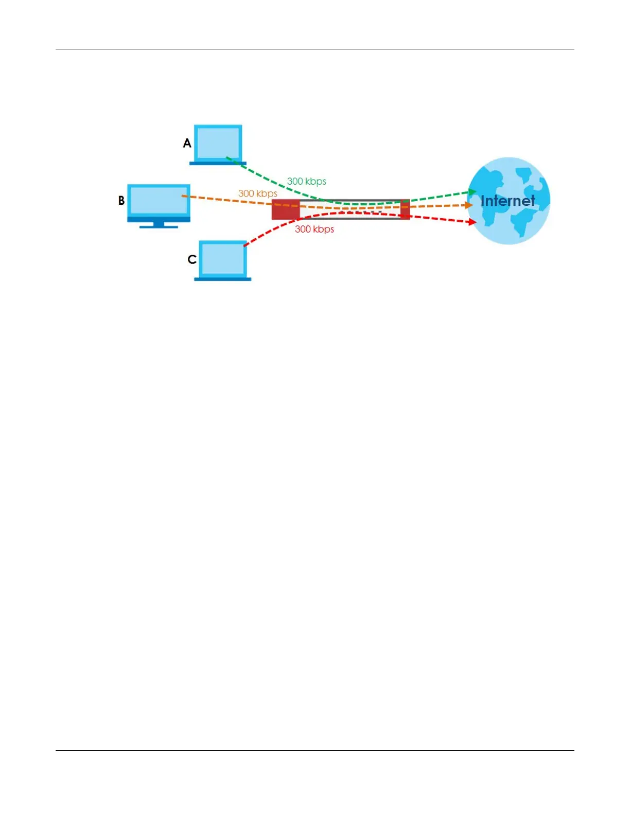 outgoing traffic to 300 kbs. Then all radius-users (A, B and C) can send 300 kbps of traffic.