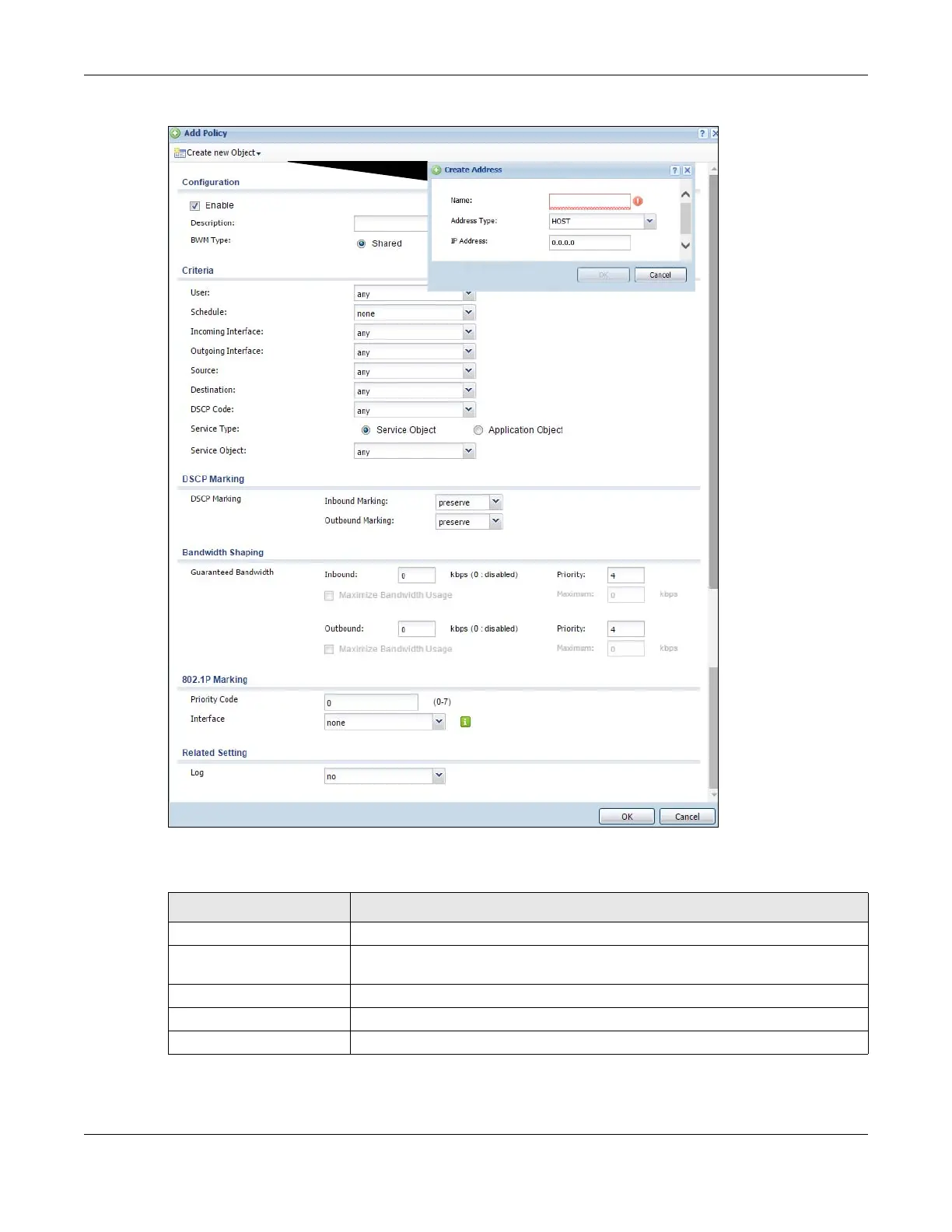 Table 248 Configuration > BWM > Create New Object > Add Address