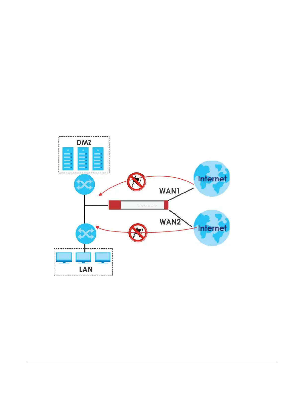 the following figure the Zyxel Device is set to check traffic coming from the WAN zone (which includes