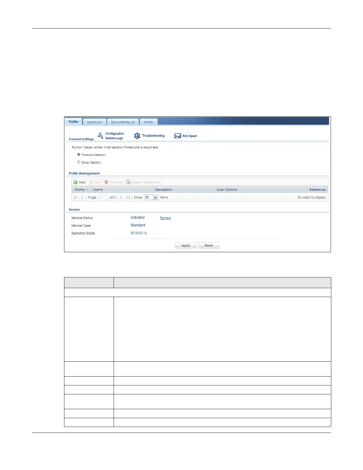 Table 275 Configuration > UTM Profile > Anti-Spam > Profile