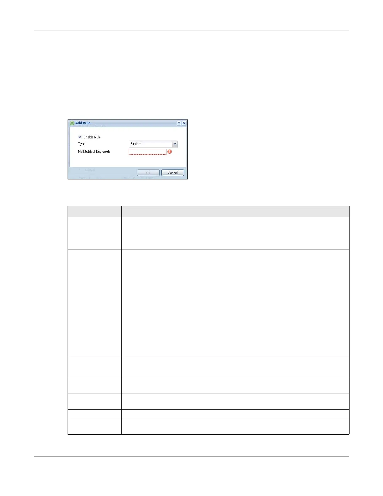 Select Subject to have the Zyxel Device check e-mail for specific content in the subject line.