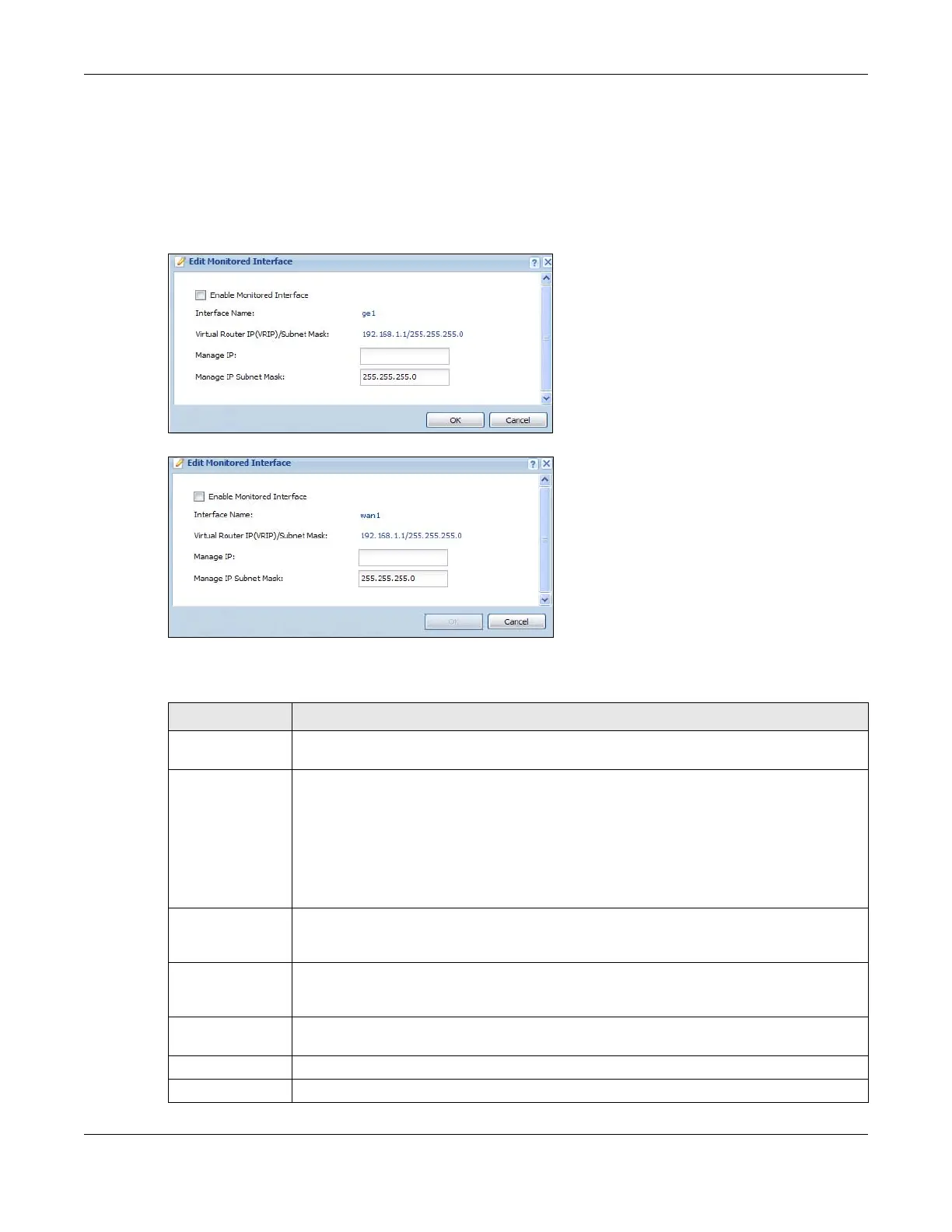 Manage IP Enter the interface’s IP address for management access. You can use this IP address to access