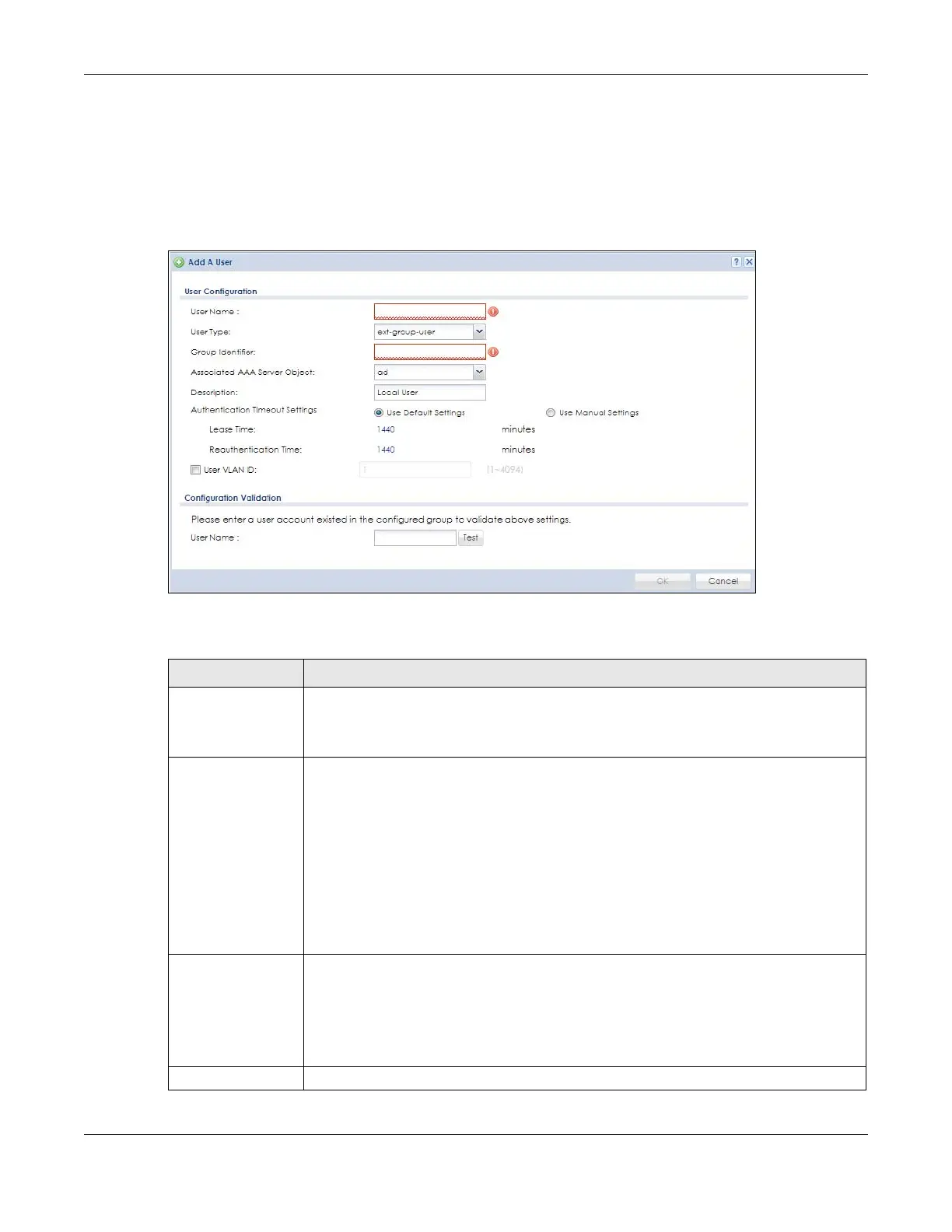 Table 295 Configuration > Object > User/Group > User > Add