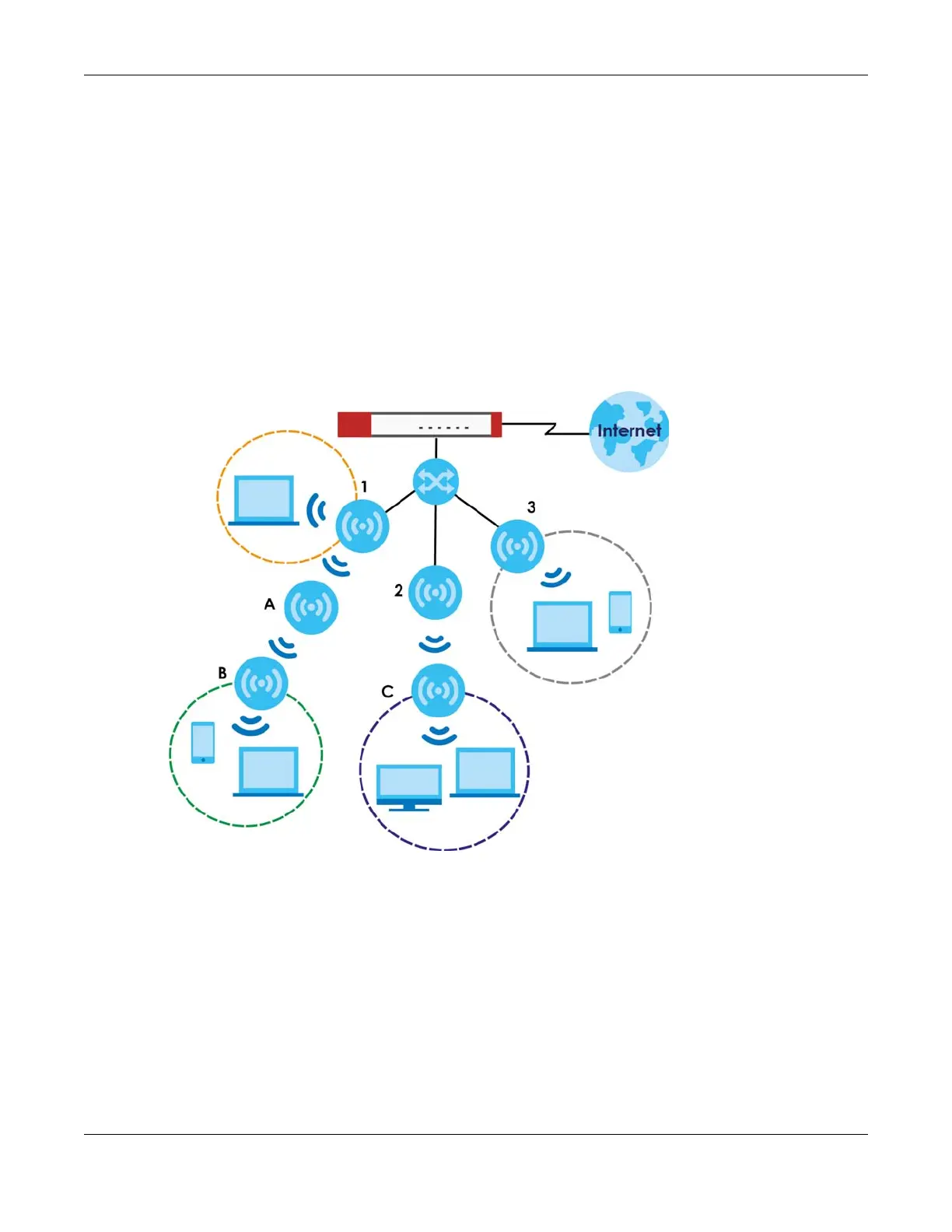 • Root AP: a managed AP that can transmit and receive data from the Zyxel Device via a wired