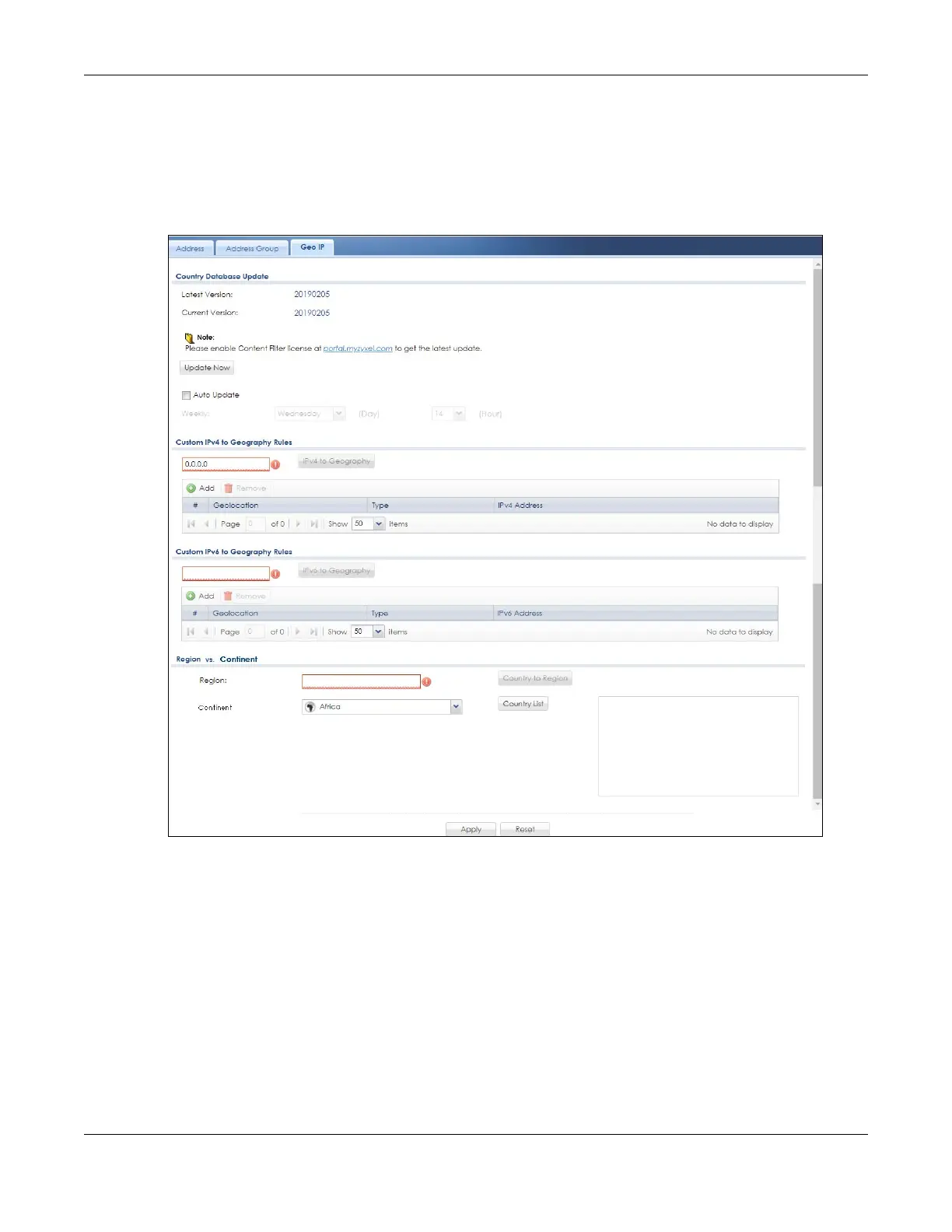 Figure 587 Configuration > Object > Address/Geo IP > Geo IP