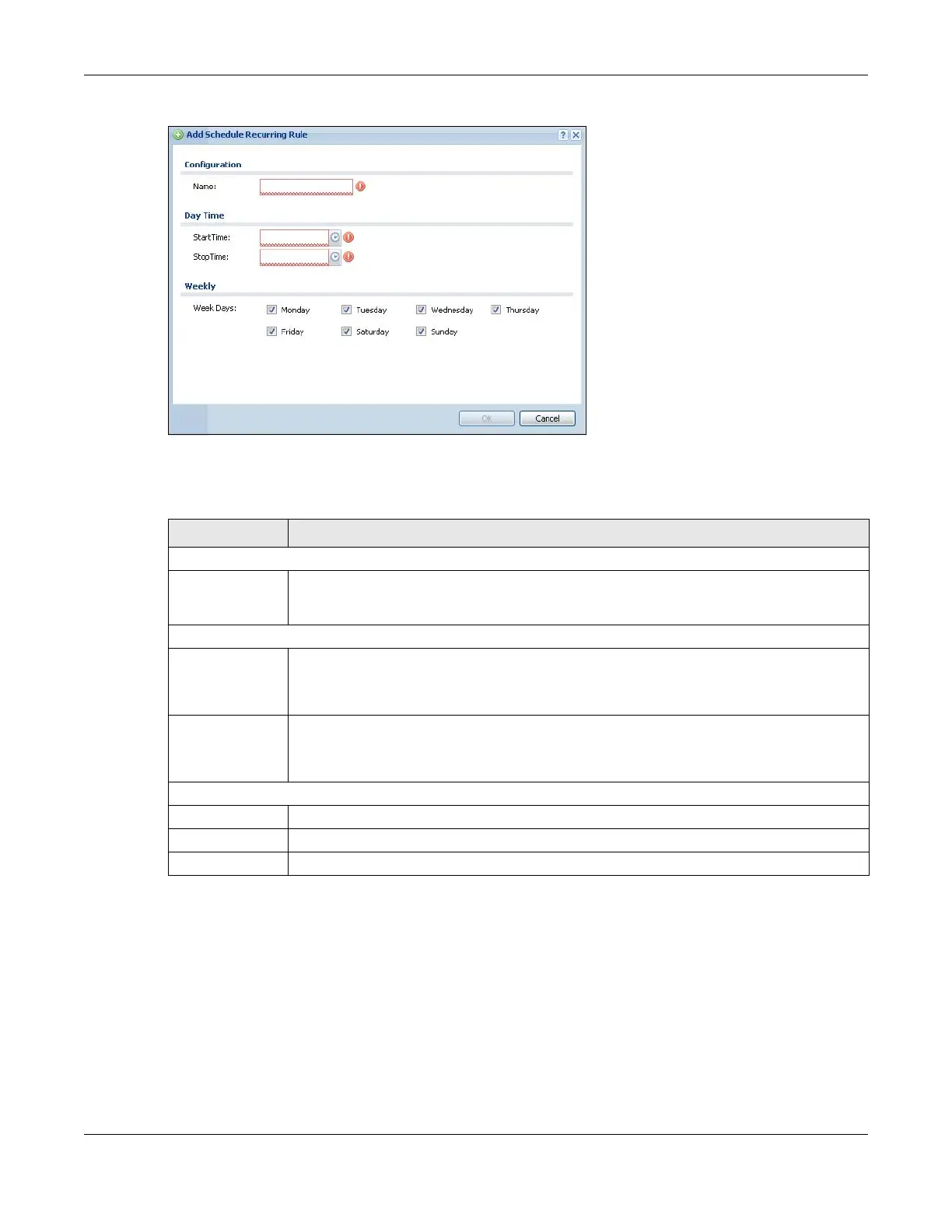 Table 336 Configuration > Object > Schedule > Edit (Recurring)