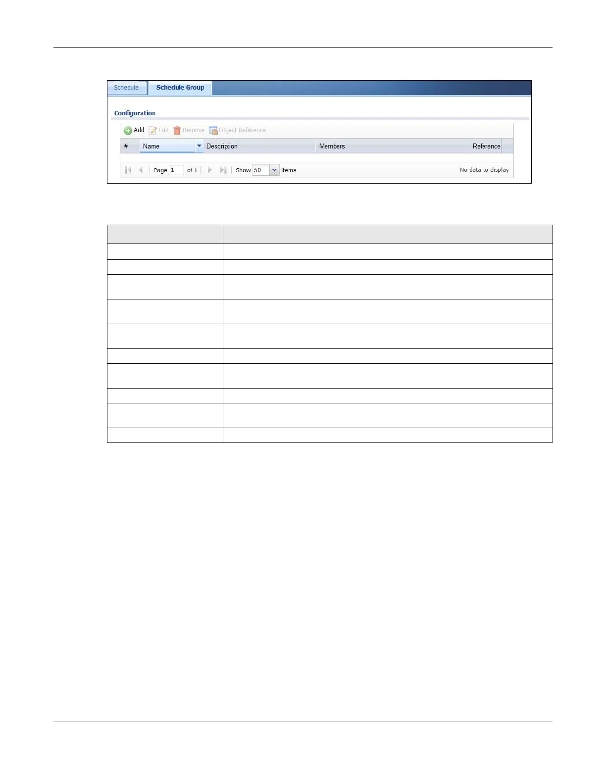 Table 337 Configuration > Object > Schedule > Schedule Group