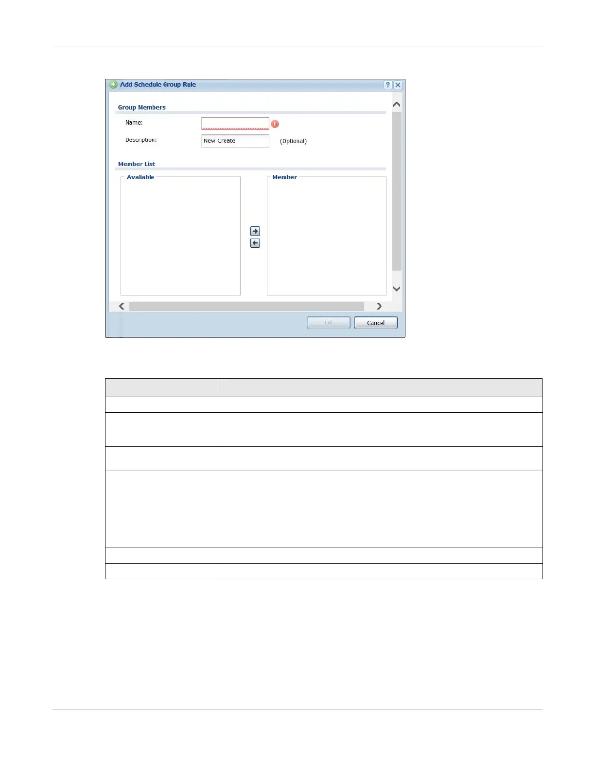 Table 338 Configuration > Schedule > Schedule Group > Add