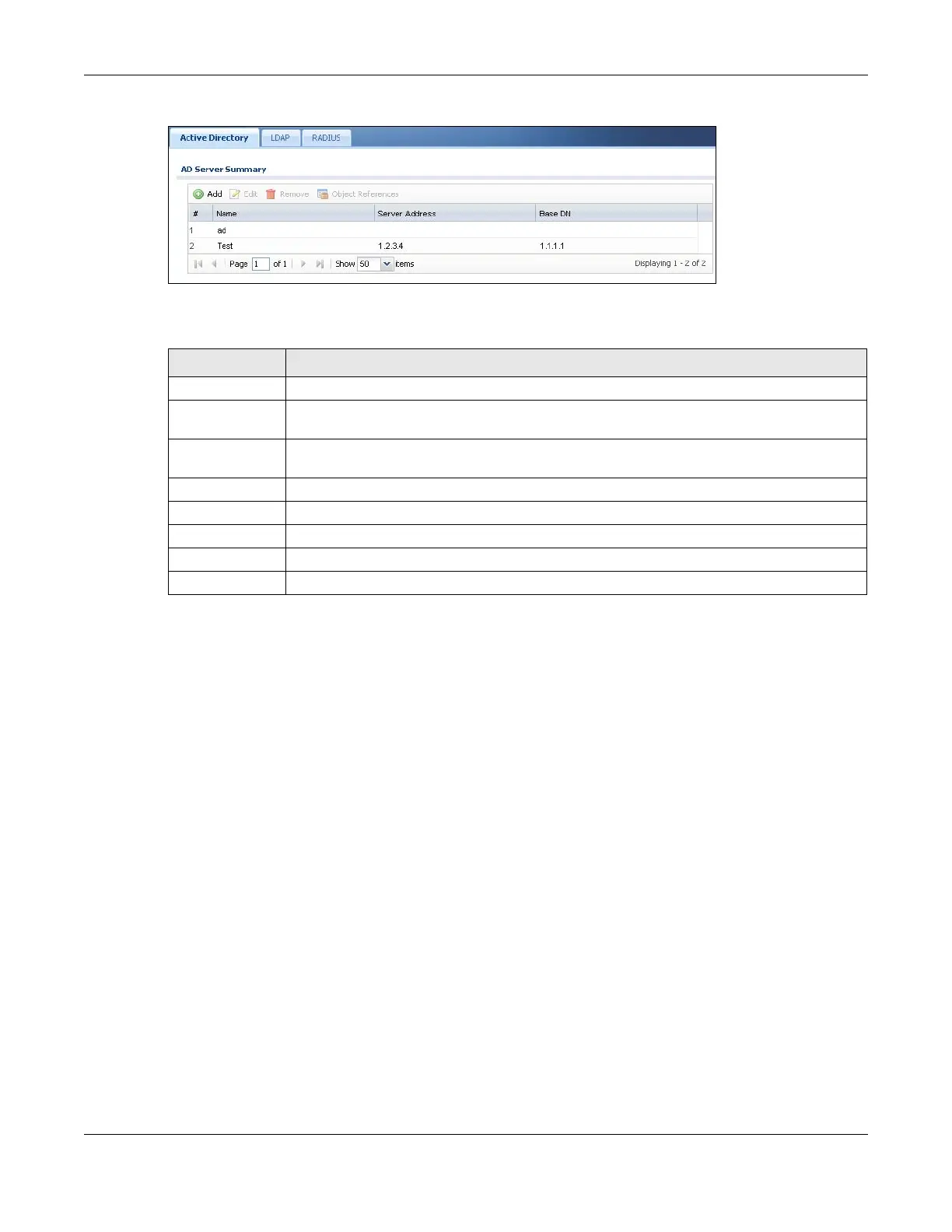 Table 339 Configuration > Object > AAA Server > Active Directory (or LDAP)