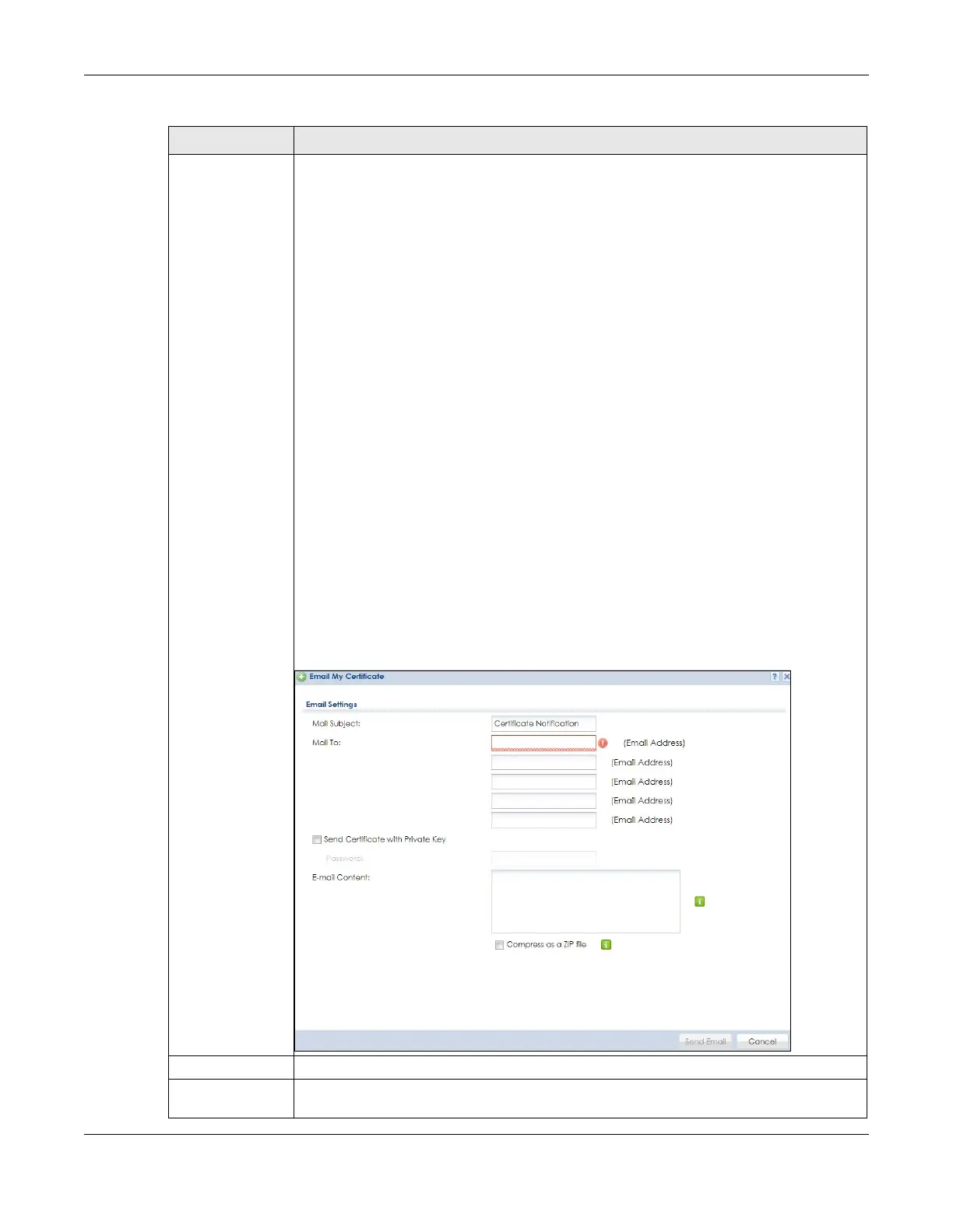 Email Click this to email the selected certificate to the configured email address(es) for SSL