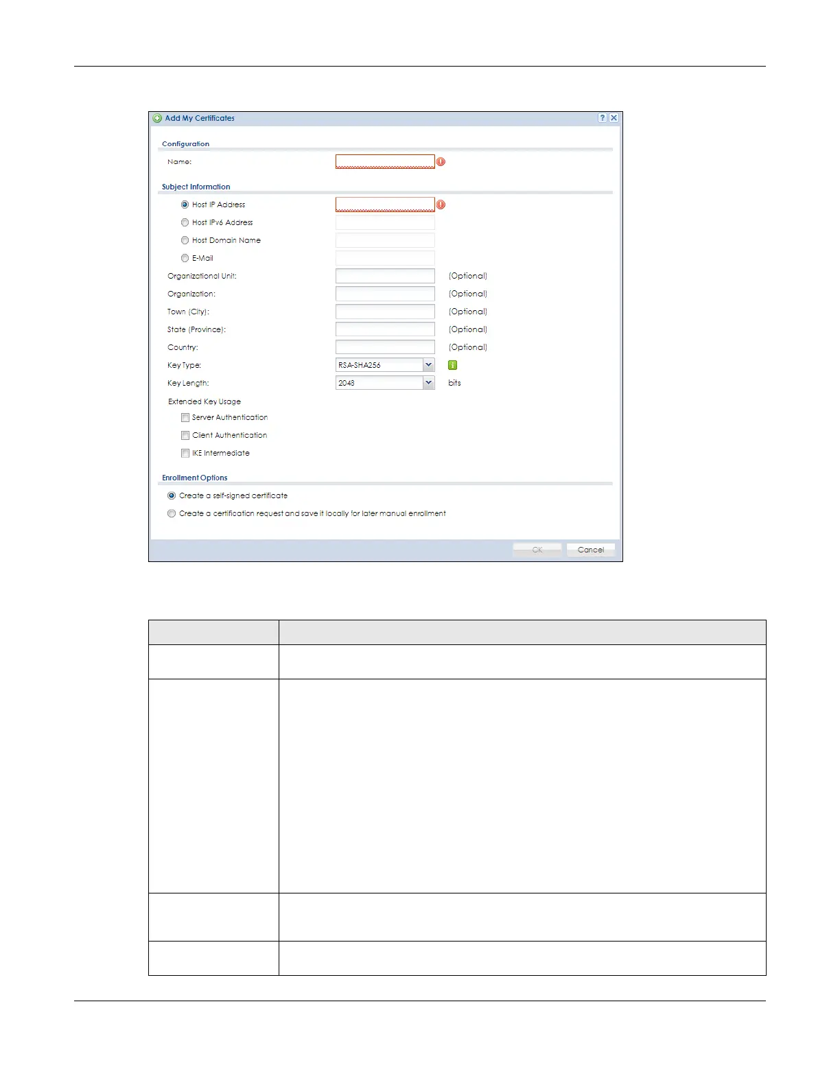 Table 348 Configuration > Object > Certificate > My Certificates > Add