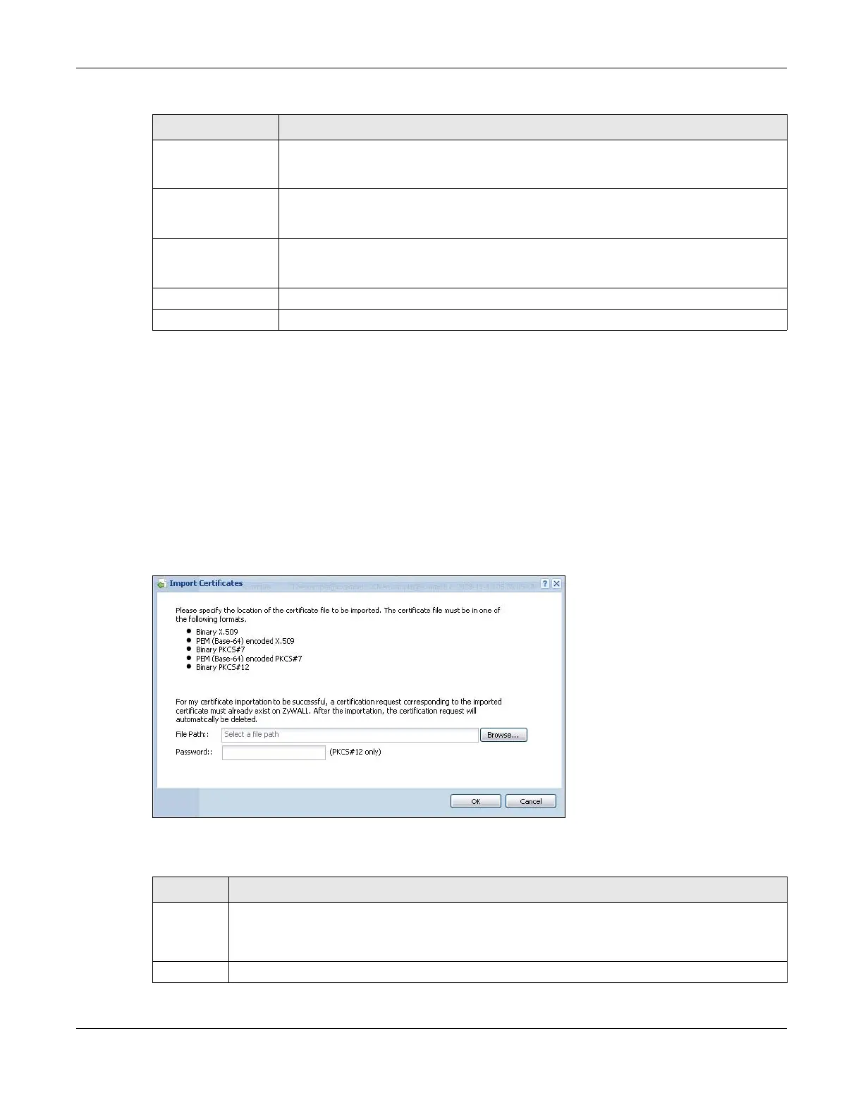 was generated by the Zyxel Device. You can also import a certificate in PKCS#12