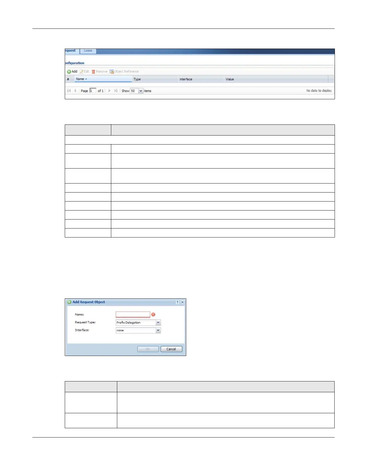 Table 359 Configuration > DHCPv6 > Request > Add
