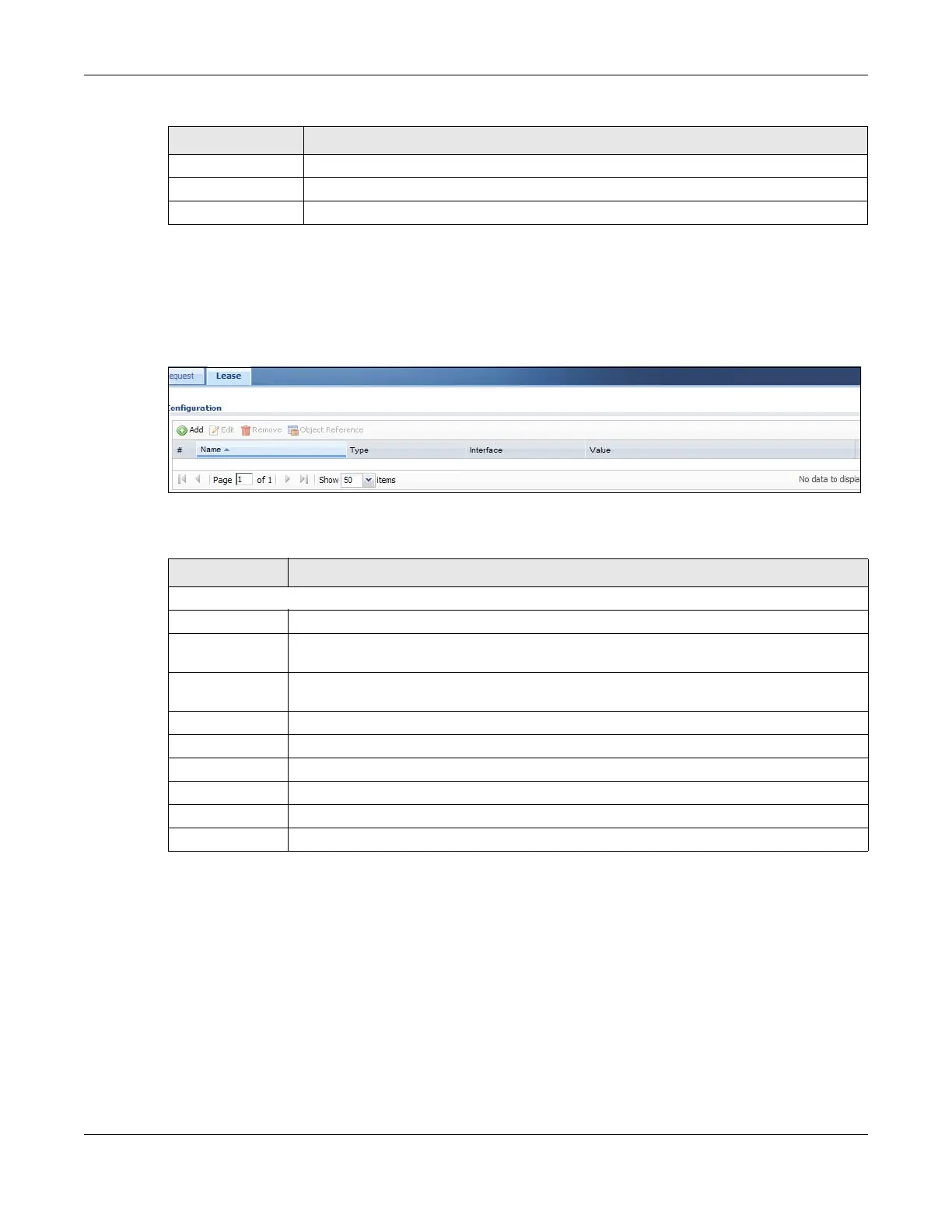 Table 360 Configuration > Object > DHCPv6 > Lease