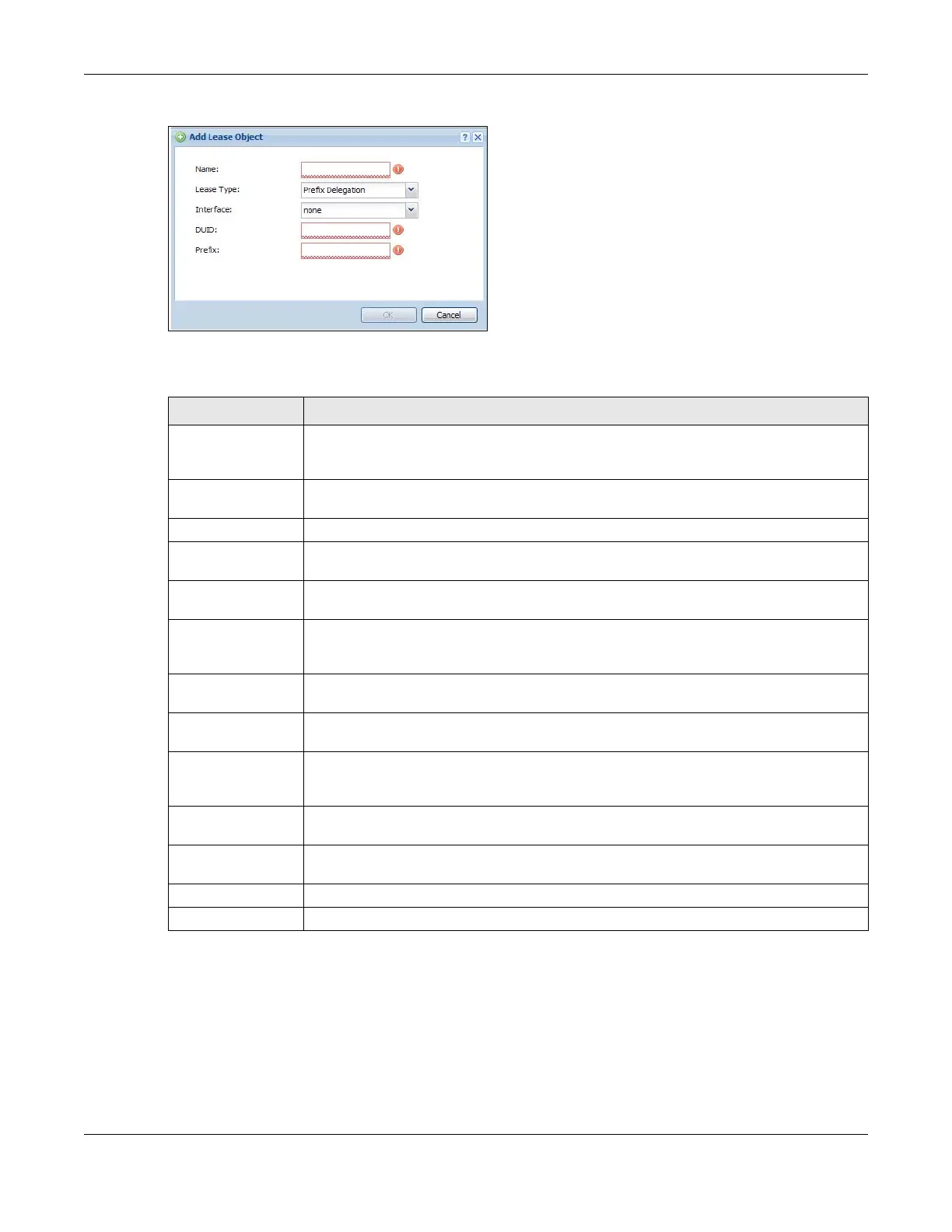 Table 361 Configuration > DHCPv6 > Lease > Add/Edit