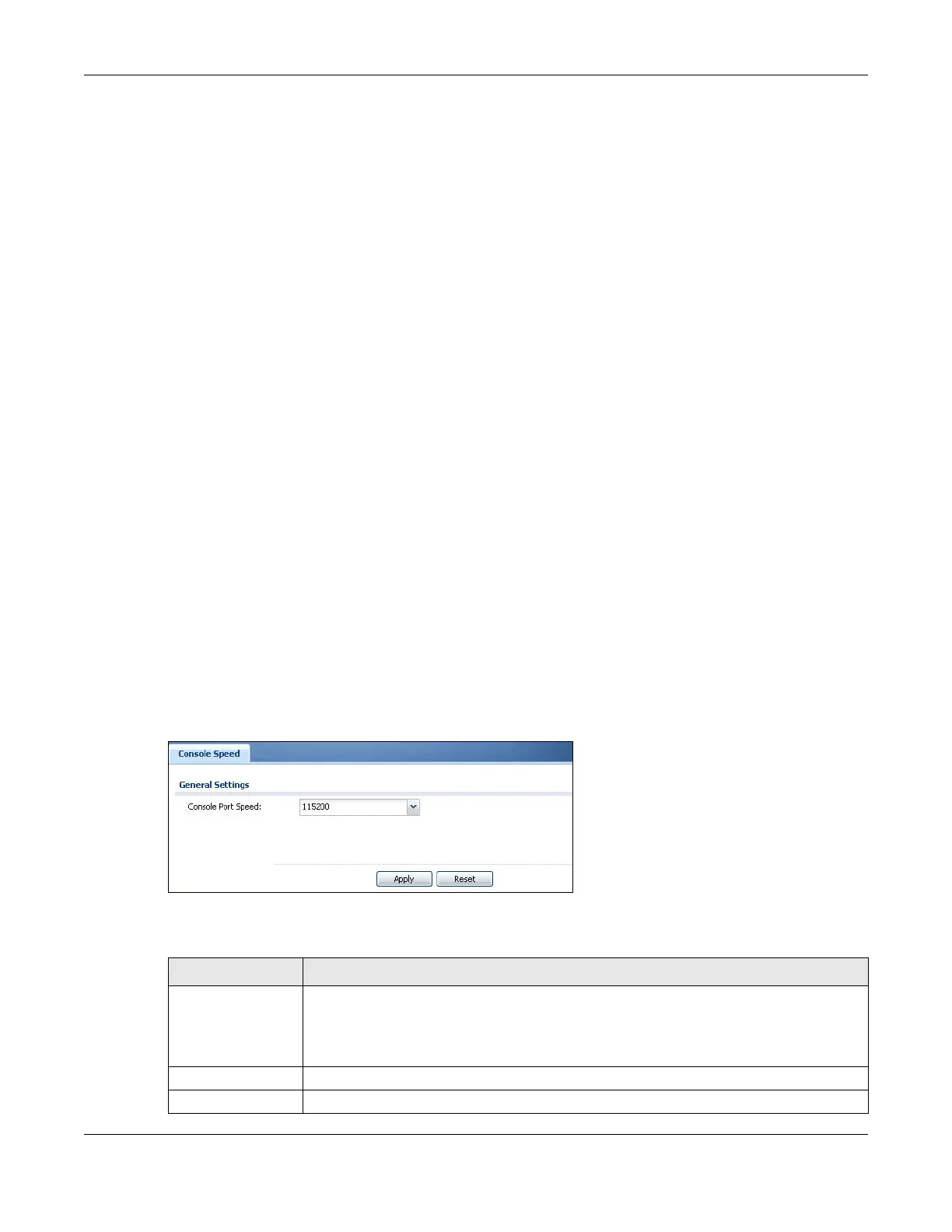 Console Port Speed Use the drop-down list box to change the speed of the console port. Your Zyxel Device