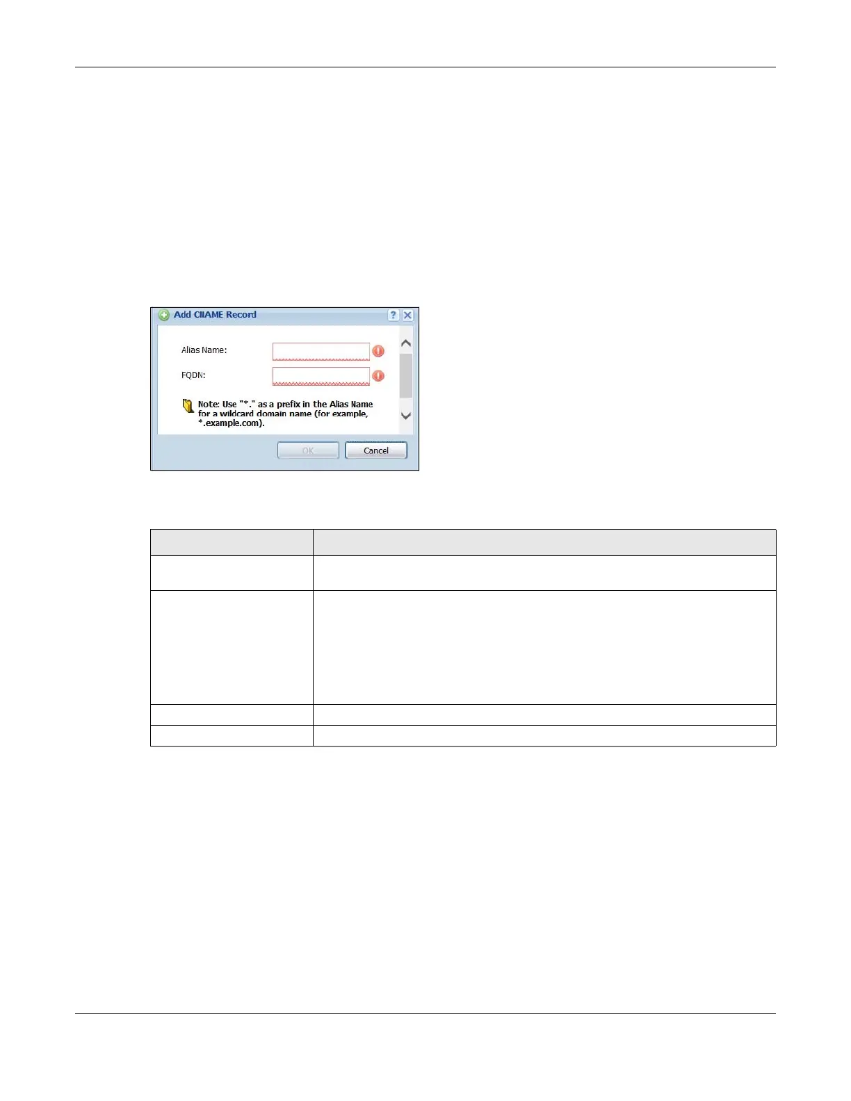 Table 369 Configuration > System > DNS > CNAME Record > Add