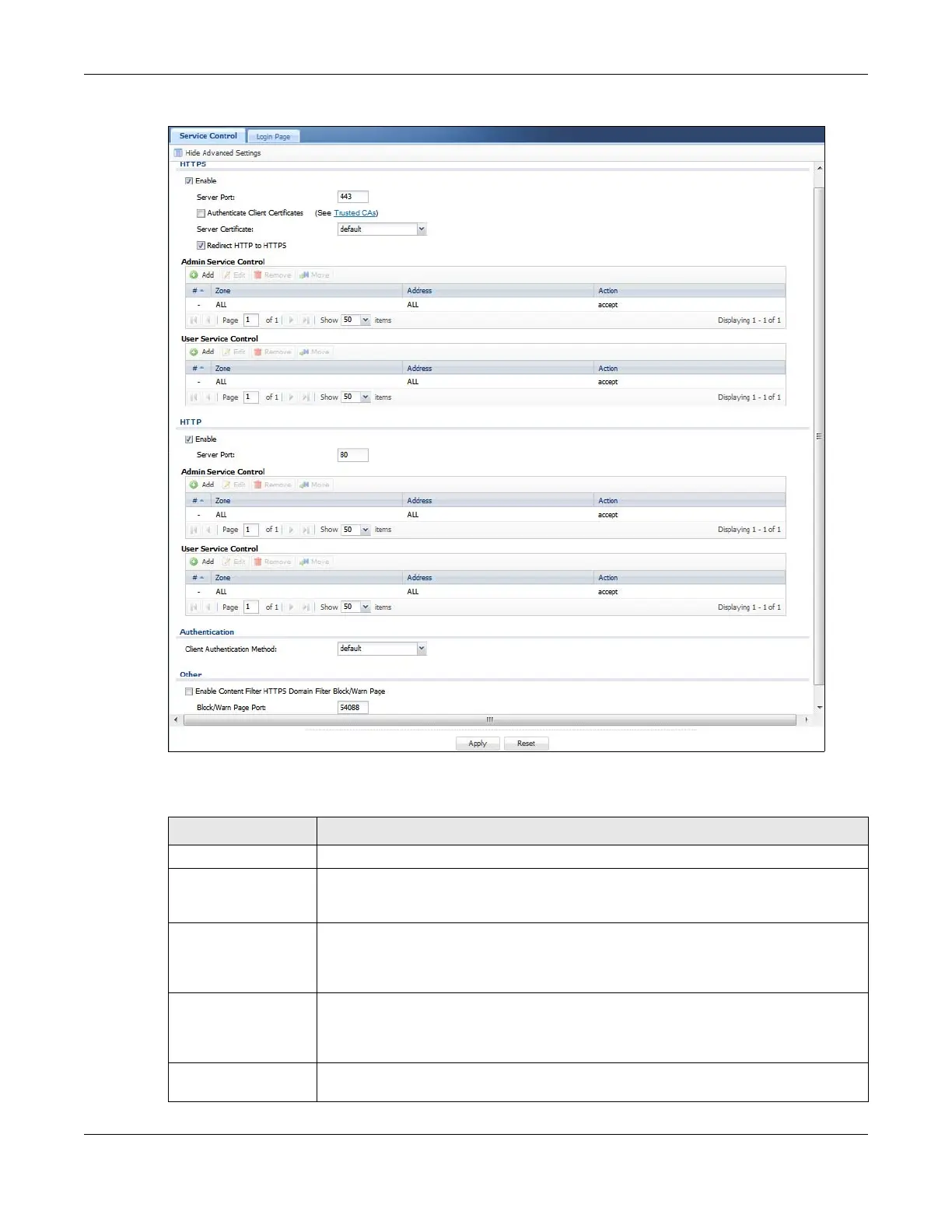 the IP address(es) in the Service Control table to access the Zyxel Device Web