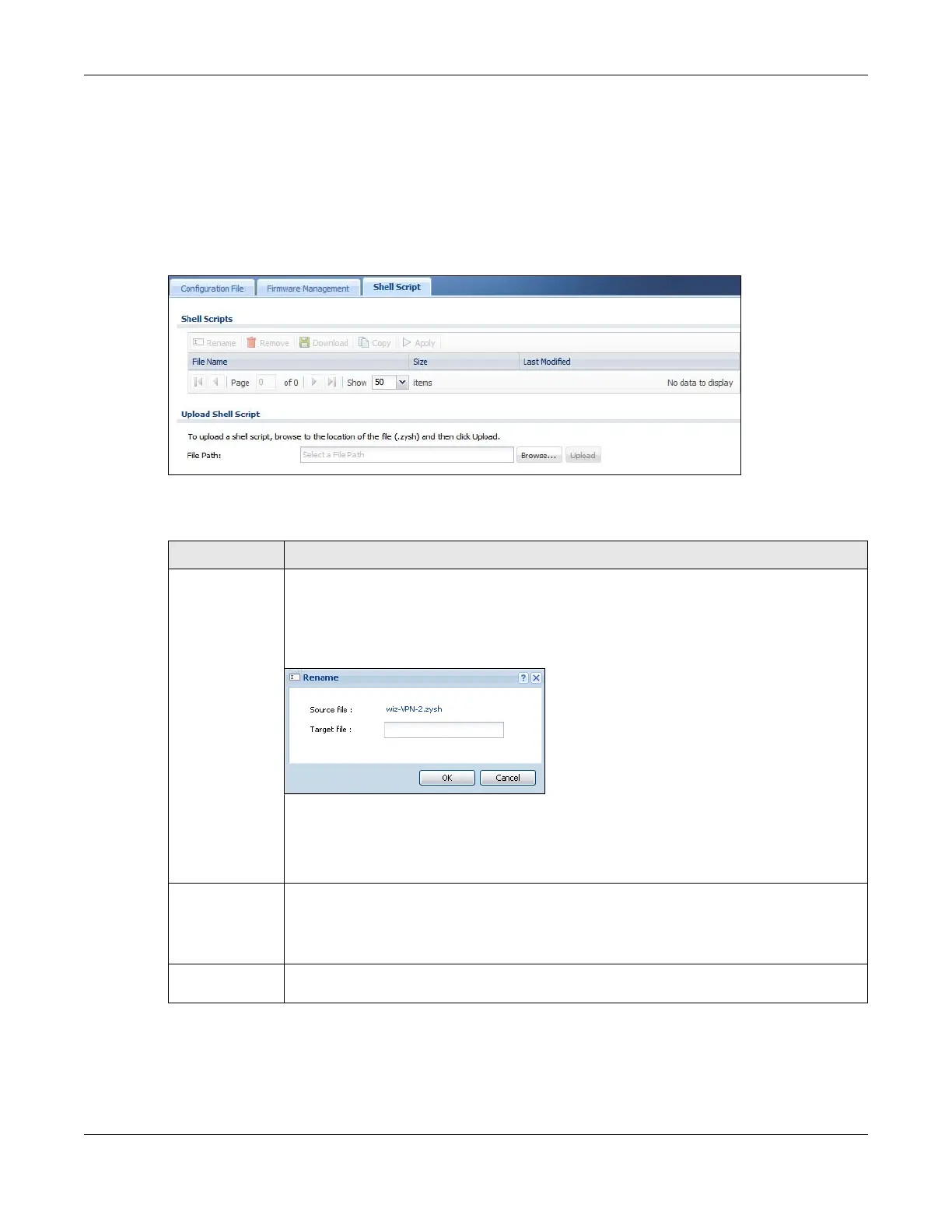 Rename Use this button to change the label of a shell script file on the Zyxel Device.