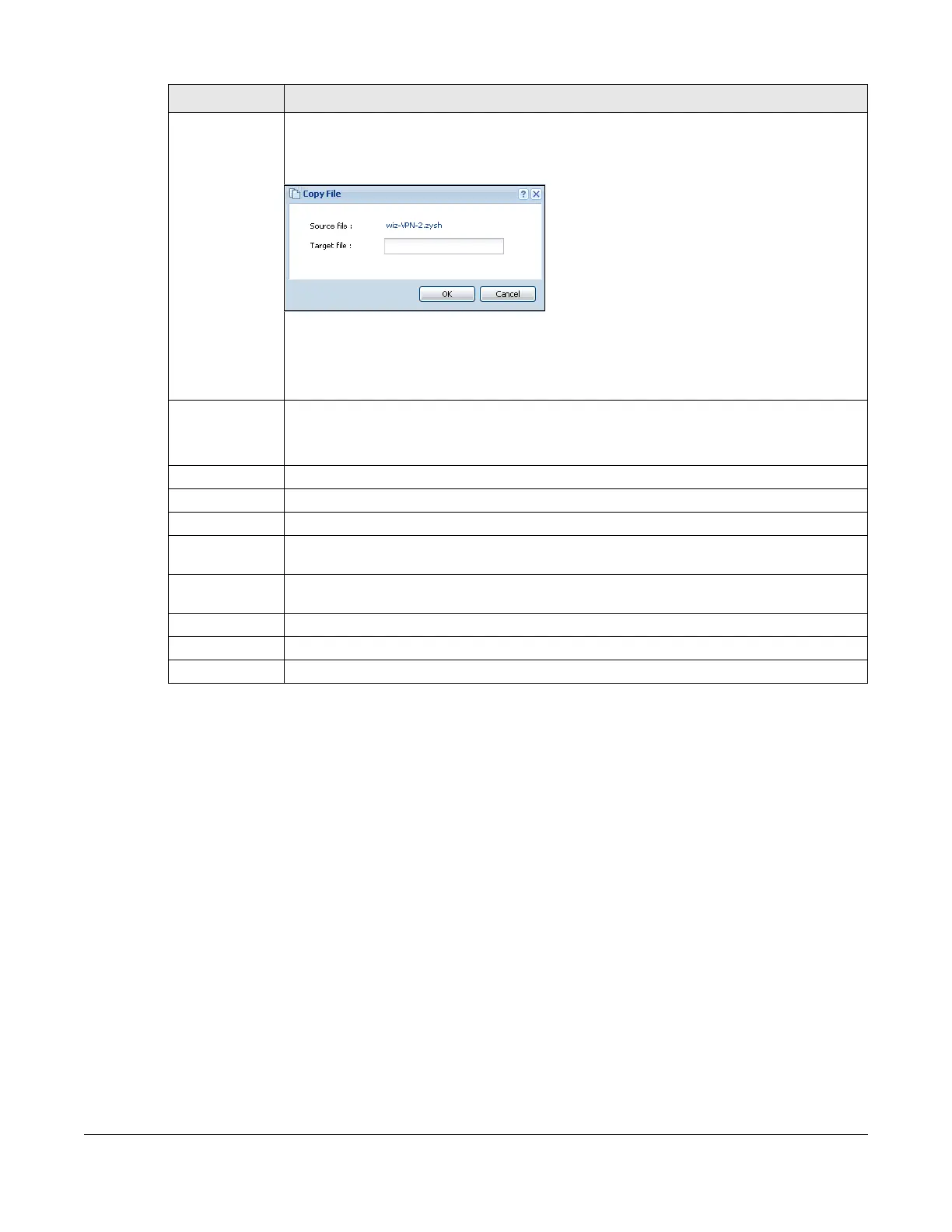 Copy Use this button to save a duplicate of a shell script file on the Zyxel Device.