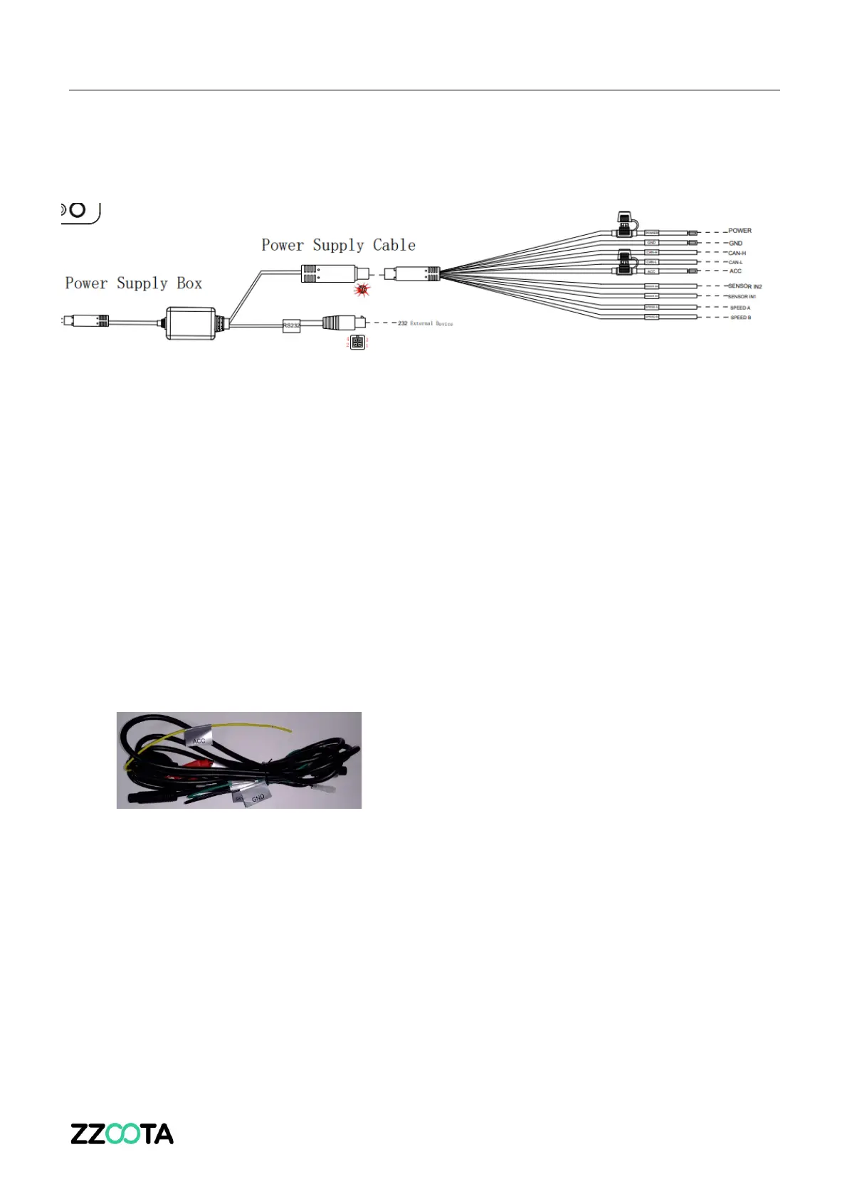 1. Connect the ACC line on the 10PIN power cord with the vehicle ignition signal line.